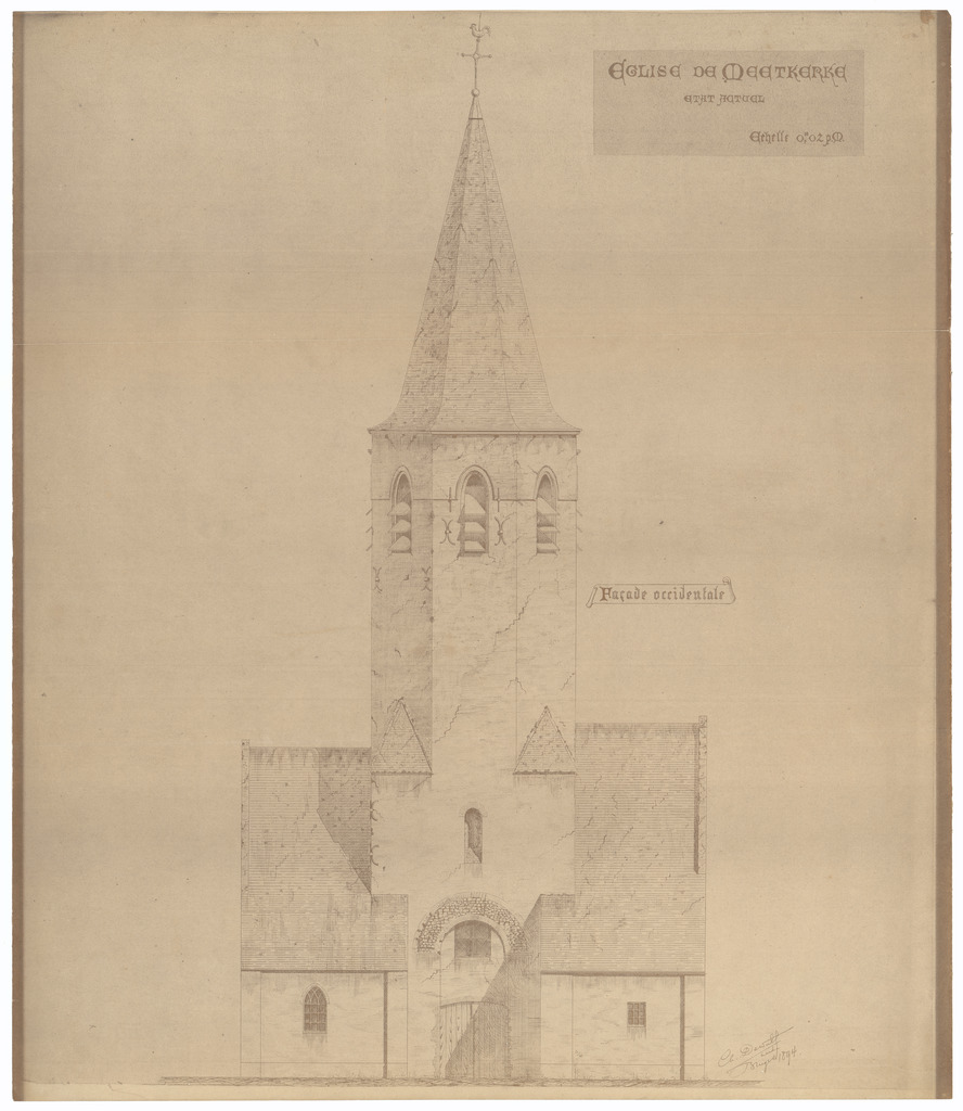 Opschrift: Eglise de Meetkerke. Etat actuel Omschrijving plan: opstand voorgevel Datum KCML: deze informatie wordt niet vermeld op het archiefstuk Archiefnummer: W1878