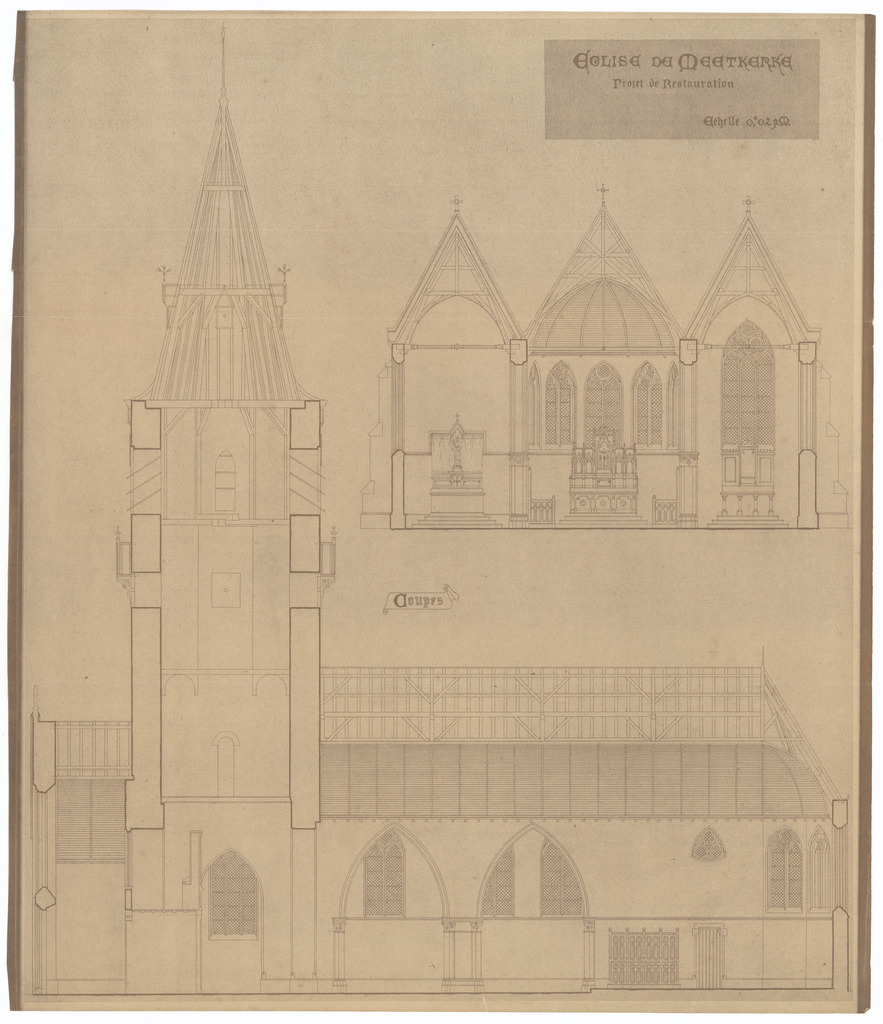 Opschrift: Eglise de Meetkerke. Projet de restauration Omschrijving plan: langsdoorsnede Datum KCML: deze informatie wordt niet vermeld op het archiefstuk Archiefnummer: W1883