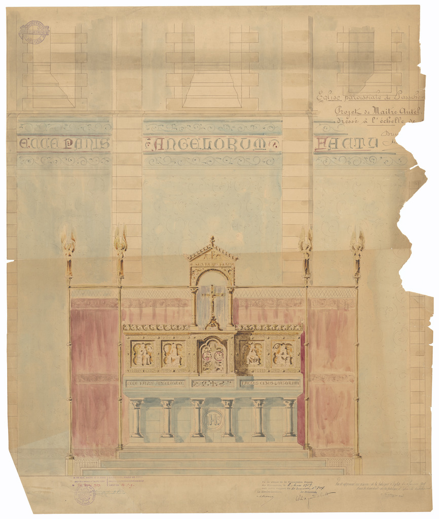 Opschrift: Eglise paroissiale de Passchen.. Projet de Maitre Autel. Omschrijving plan: ontwerp hoogaltaar Datum KCML: 6-3-1909 Archiefnummer: W1861