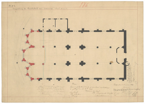 Drager: papier Techniek: pen, opgehoogd met rode en zwarte inkt Afmetingen (h x b in mm): 441 x 606 mm Schaal: 1/100