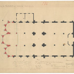 Opschrift: Vergrooting der Parochiekerk van Oostcamp. Omschrijving plan: plattegrond niveau 0 Datum KCML: 15/02/1888 Archiefnummer: W1917