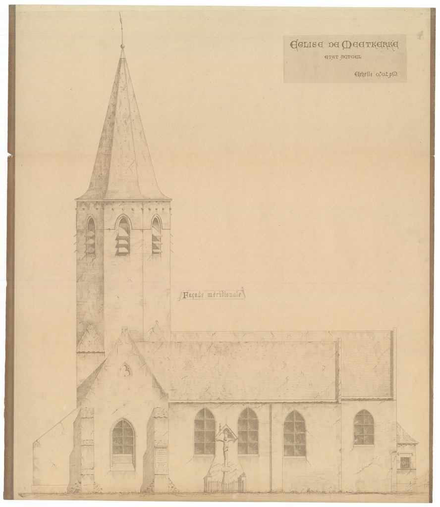 Opschrift: Eglise de Meetkerke. Etat actuel Omschrijving plan: opstand Z-gevel Datum KCML: deze informatie wordt niet vermeld op het archiefstuk Archiefnummer: W1880