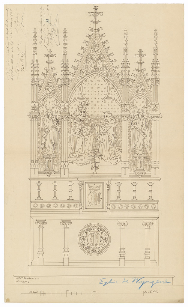 Opschrift: deze informatie wordt niet vermeld op het archiefstuk Omschrijving plan: ontwerp altaar O.L.V. Datum KCML: 27/07/1883 Archiefnummer: W1800