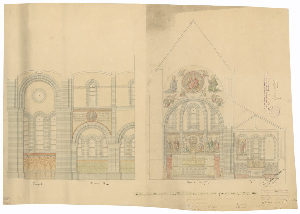 Opschrift: Ontwerp van muurschildering der Parochiale Kerk van Passchendaele (W.Vl.) Omschrijving plan: ontwerp muurschildering Datum KCML: deze informatie wordt niet vermeld op het archiefstuk Archiefnummer: W1920