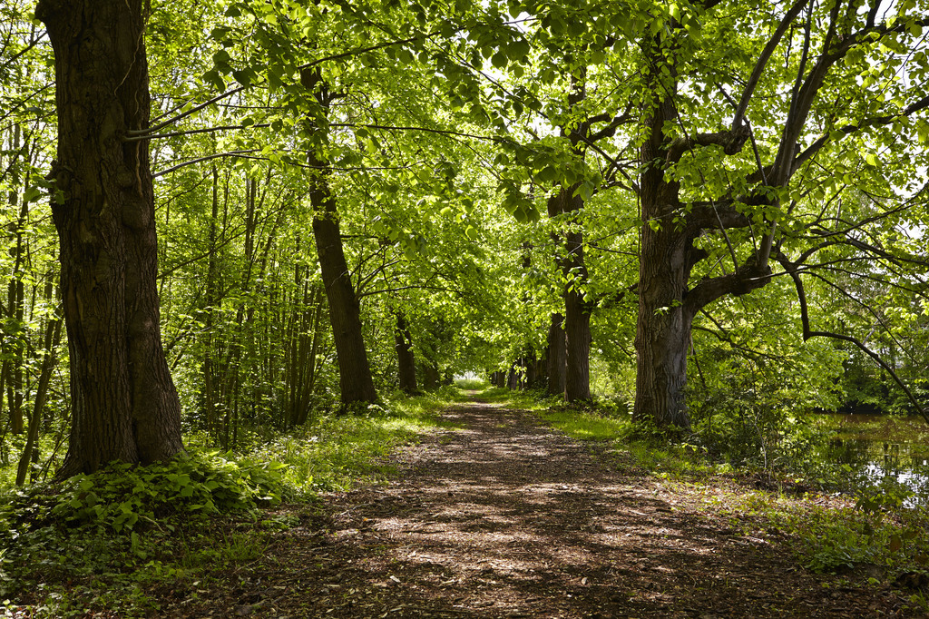 Opgaande lindendreef bij Vijverpoort Kasteeldomein van Poeke