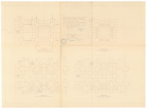 Opschrift: Sint-Niklaaskerk te Gent. Oprichten van een metalen steigerwerk om de vieringtoren met twee liftkokers. Omschrijving plan: steiger rond de vieringtoren Datum KCML: deze informatie wordt niet vermeld op het archiefstuk Archiefnummer: O1613
