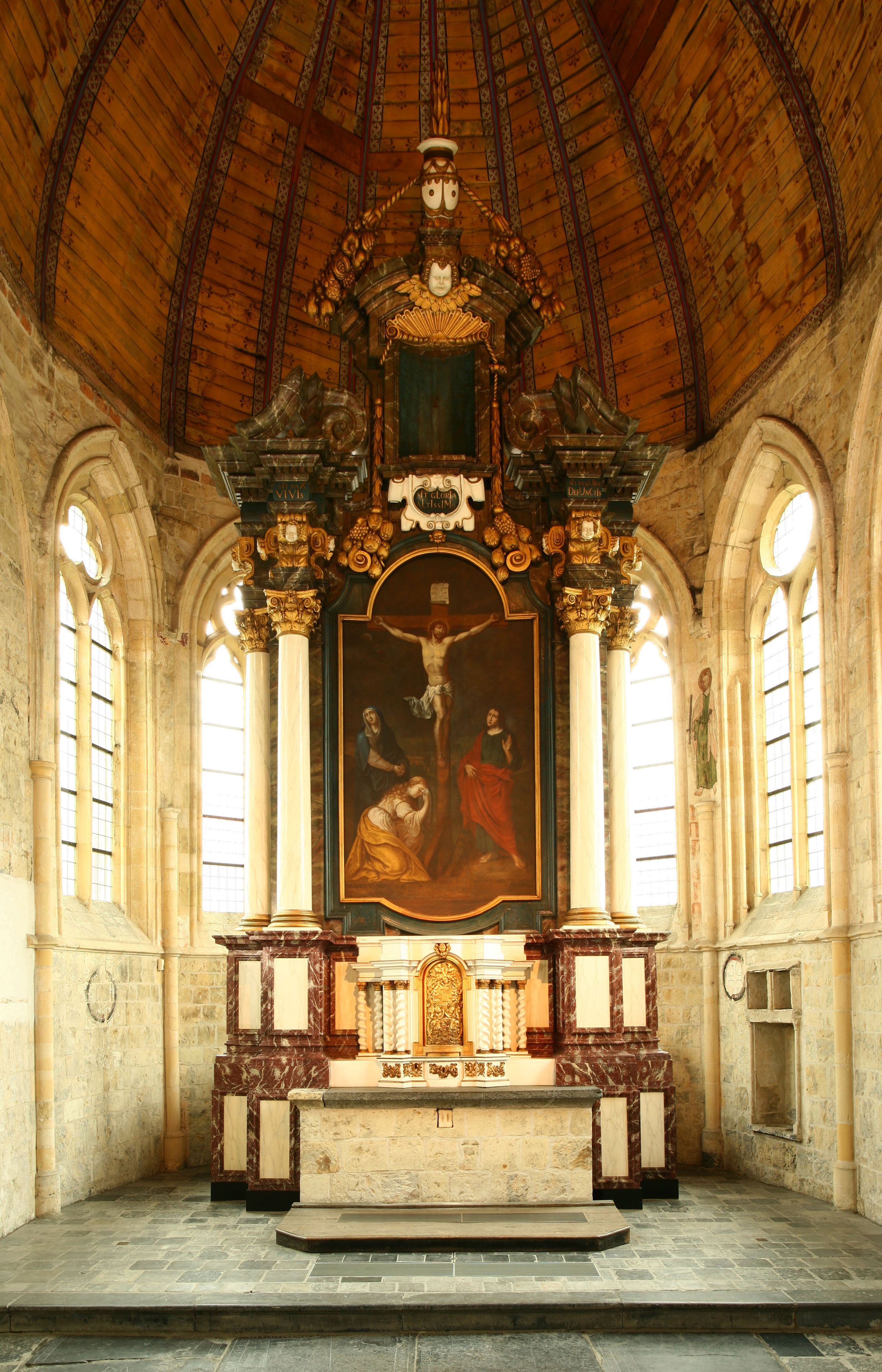 Hoogaltaar met Kruisiging in 1700 door Lambot geschilderd, in opdracht van pastoor Cartuyvels. Publicatie(s): Relicta Monografieën 2; In zuiverheid leven. Het Sint-Agnesbegijnhof van Sint-Truiden Label(s): begijnhofkerken, meubilair