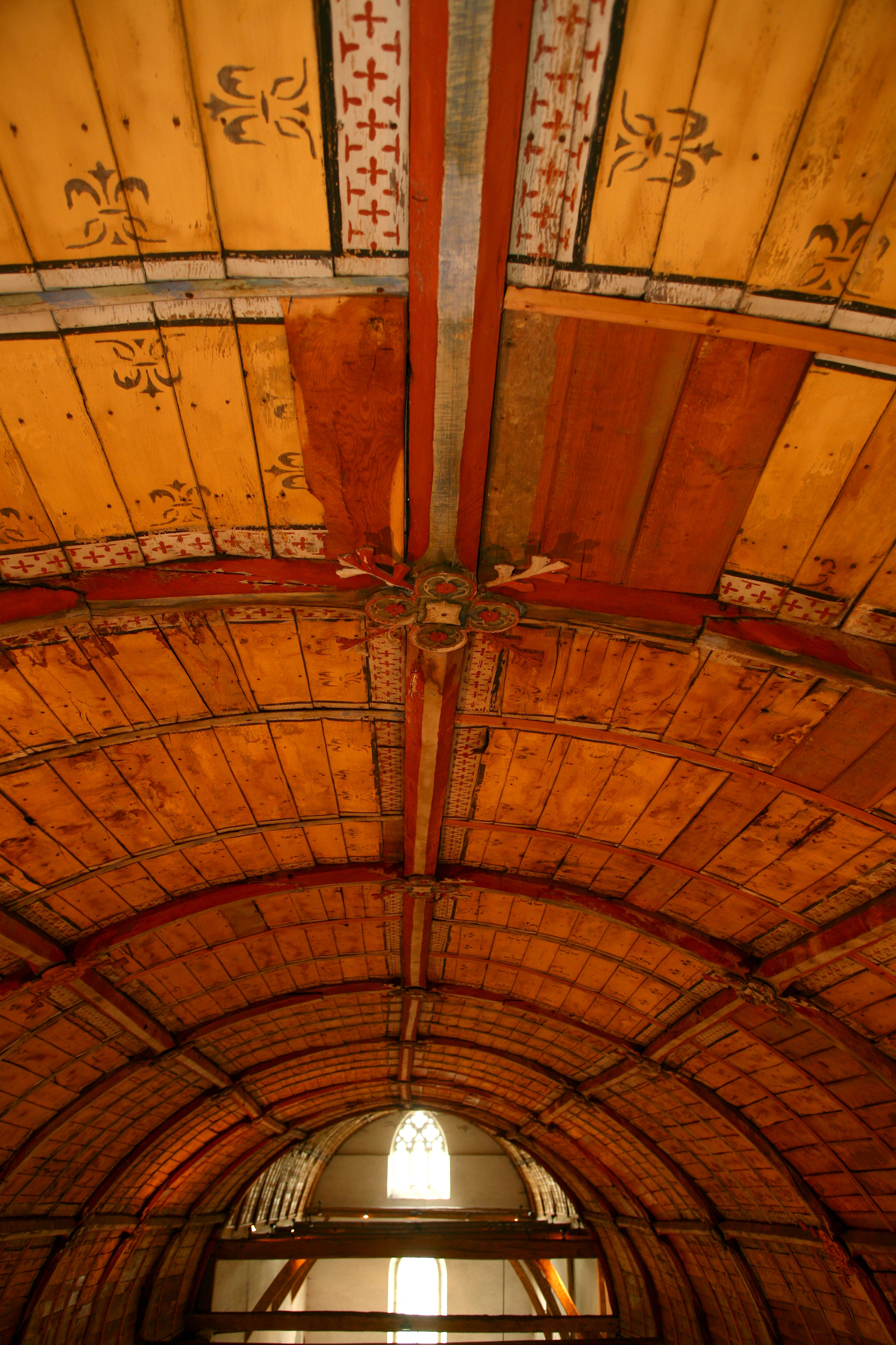 Houten tongewelf met ribben en gewelfschotels. Publicatie(s): Relicta Monografieën 2; In zuiverheid leven. Het Sint-Agnesbegijnhof van Sint-Truiden Label(s): begijnhofkerken, interieurs