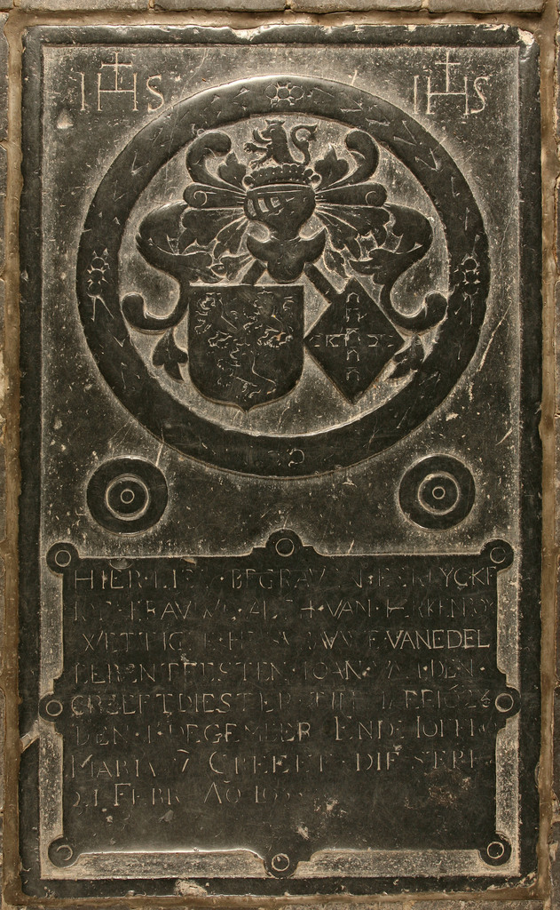 Alth van Herkenroy [Alet van Herckenrode] (1623), Maria van Creeft (1653 of 1655). Grafzerk met wapenschild (1,76 × 1,02 m) in de zesde travee van de middenbeuk. Hercken- rode 1845, 42, nr. 28; Straven 1876, 91, nr. 5. Publicatie(s): Relicta Monografieën 2; In zuiverheid leven. Het Sint-Agnesbegijnhof van Sint-Truiden Label(s): begijnhofkerken, interieurs, graftekens
