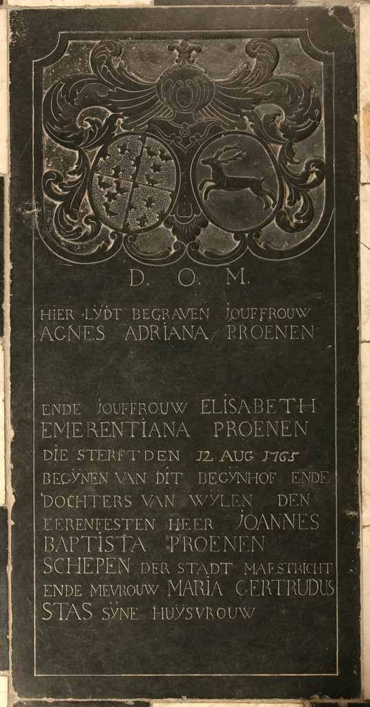 Agnes, barones de Hubens (1788). Grafzerk (1,76 × 0,88 m) in de vierde travee van zuide- lijke zijbeuk, waar vroeger een Kalvarie stond. Herckenrode 1845, 66, nr. 40; Straven 1876, 79. Publicatie(s): Relicta Monografieën 2; In zuiverheid leven. Het Sint-Agnesbegijnhof van Sint-Truiden Label(s): begijnhofkerken, interieurs, graftekens