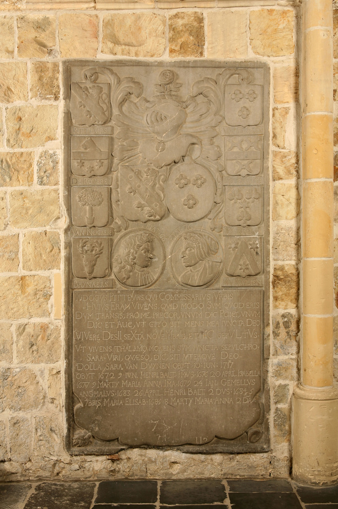 Judocus Pitteurs (1690), Sara van Duynen (1717). Grafsteen (2,11 × 1,15 m) in het koor, rechtstaand tegen de zuidelijke muur, oor- spronkelijk in het koor van de Onze-Lieve- Vrouwkerk van Sint-Truiden (overgebracht in de loop van de 19de eeuw). Straven 1876, 98-99, nr. 19. Publicatie(s): Relicta Monografieën 2; In zuiverheid leven. Het Sint-Agnesbegijnhof van Sint-Truiden Label(s): begijnhofkerken, interieurs, graftekens