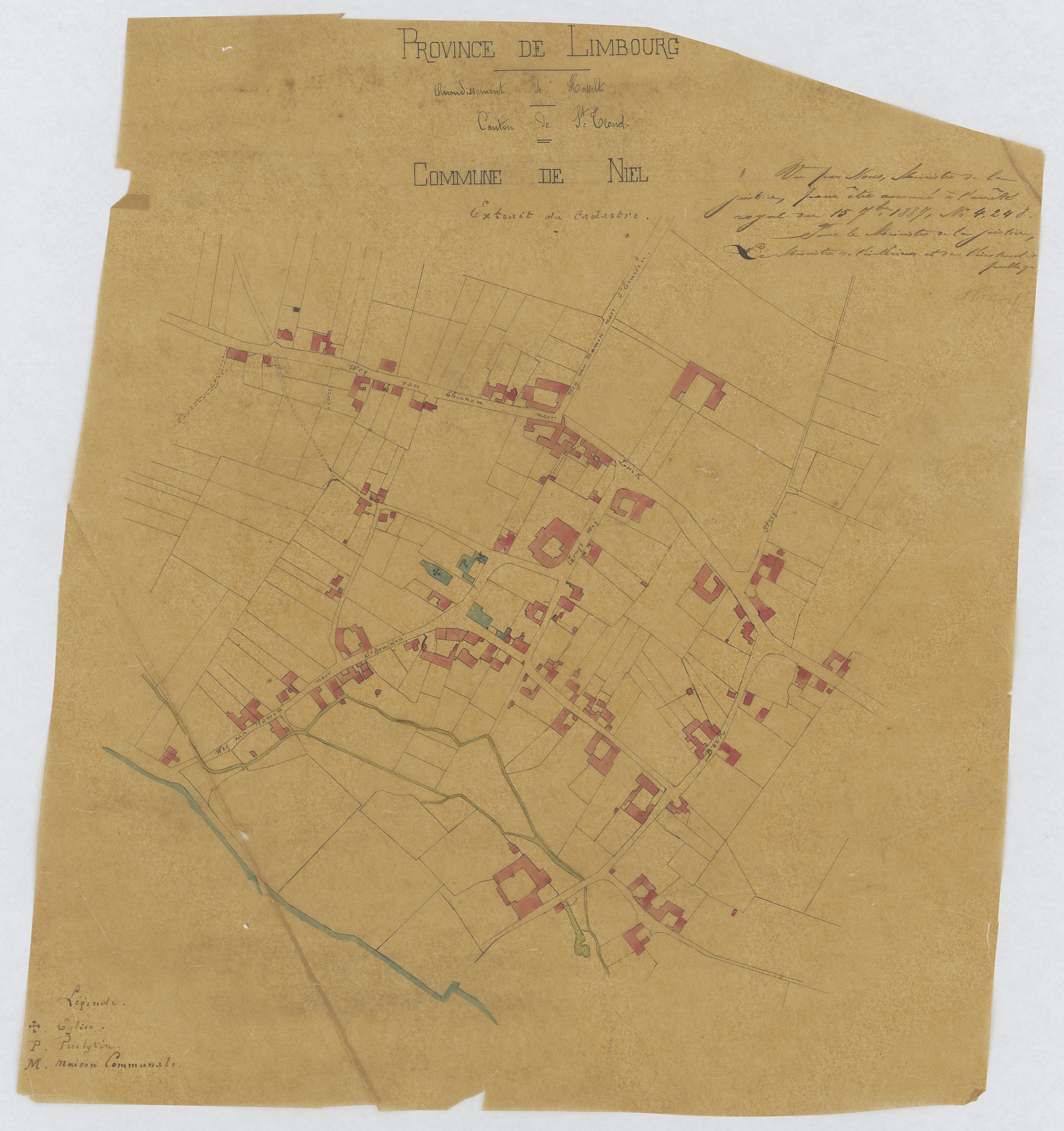 Opschrift: Province de Limbourg. Arrondissement de Hasselt. Canton de St. Trond. Commune de Niel. Extrait du cadastre. Omschrijving plan: situatieplan Datum KCML: deze informatie wordt niet vermeld op het archiefstuk Archiefnummer: L0024