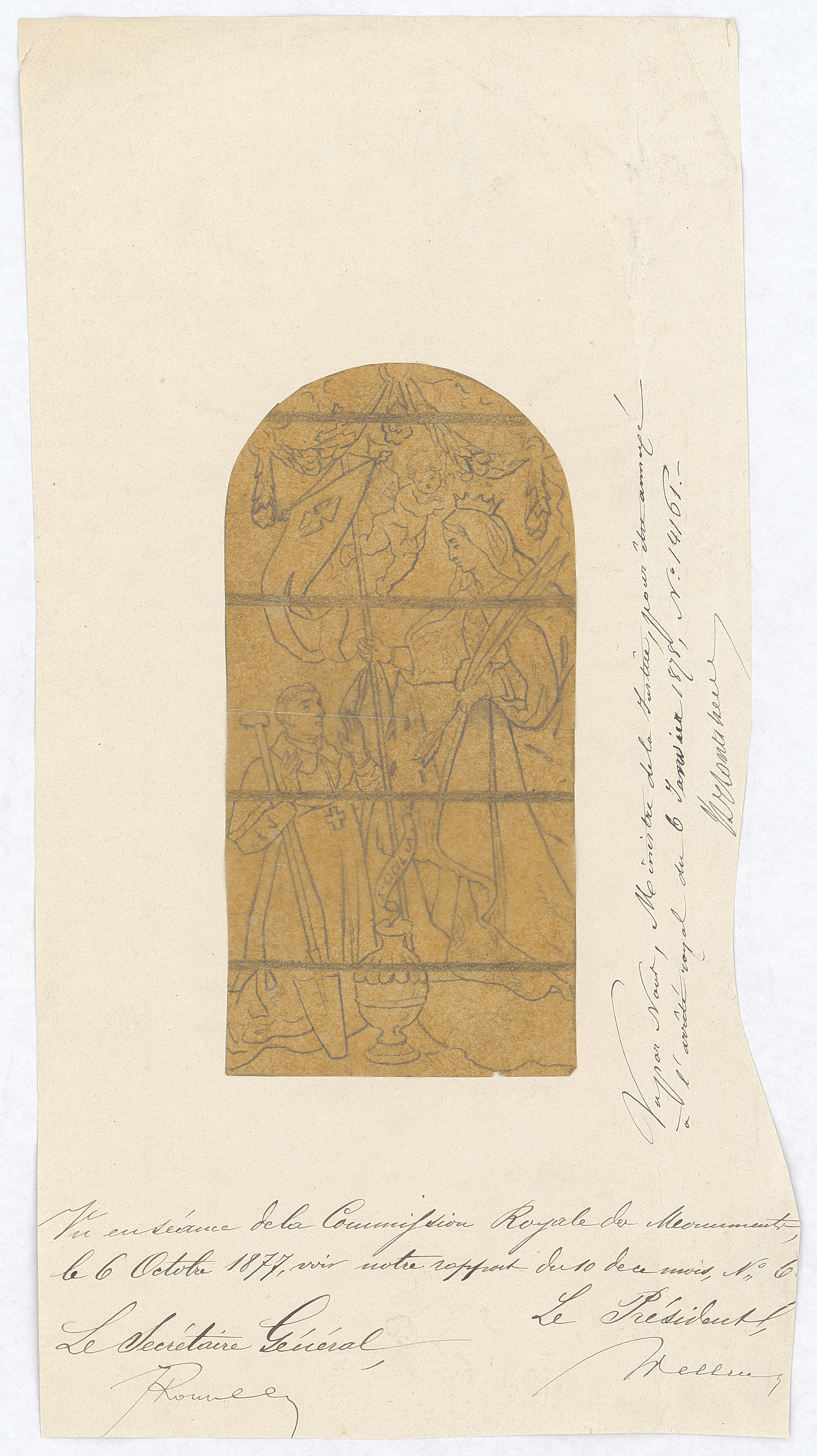 Opschrift: deze informatie wordt niet vermeld op het archiefstuk Omschrijving plan: ontwerp glasraam Datum KCML: 06/10/1877 Archiefnummer: L0049