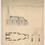 Opschrift: Ontwerp van Vergrooting der Kerk te Kleine-Spauwen - Tegenwoordige staat Omschrijving plan: plattegrond, opstand zijgevel, doorsnede Datum KCML: deze informatie wordt niet vermeld op het archiefstuk Archiefnummer: L0087