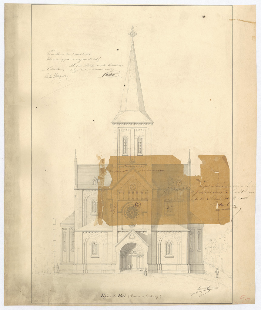Opschrift: Église de Pael Omschrijving plan: opstand voorgevel Datum KCML: 07/04/1862 Archiefnummer: L0061