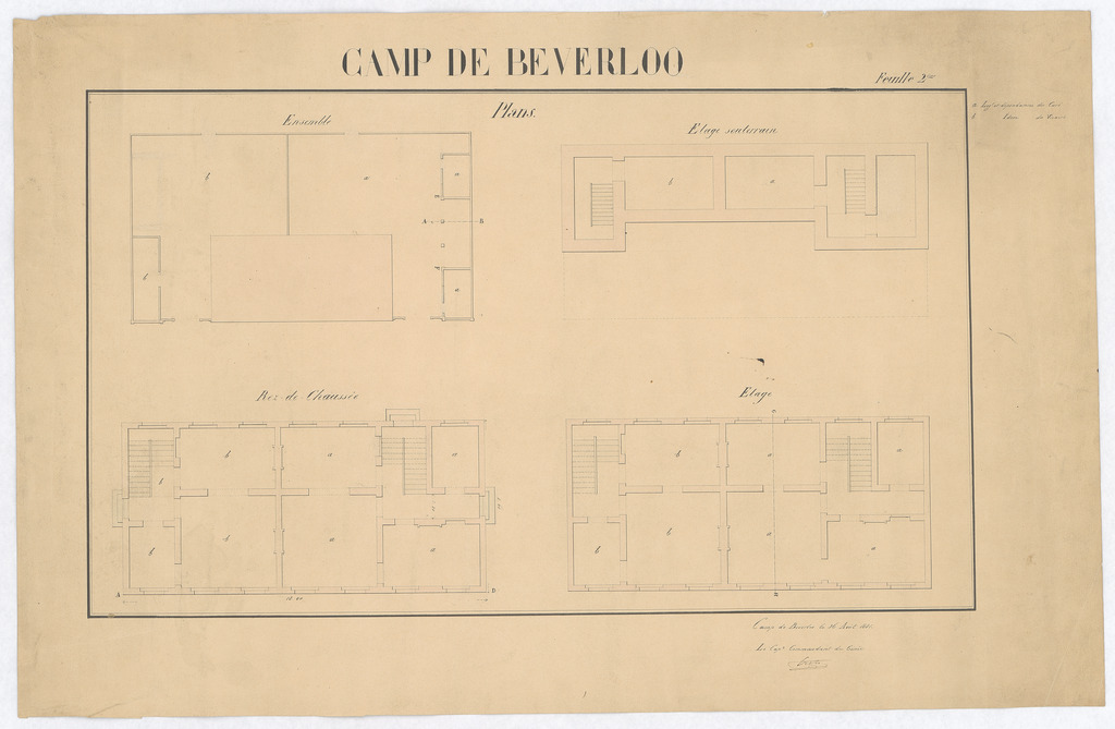 Opschrift: Camp de beverloo Omschrijving plan: plattegrond niveau -1, plattegrond niveau 0, plattegrond niveau 1 Datum KCML: deze informatie wordt niet vermeld op het archiefstuk Archiefnummer: L0051