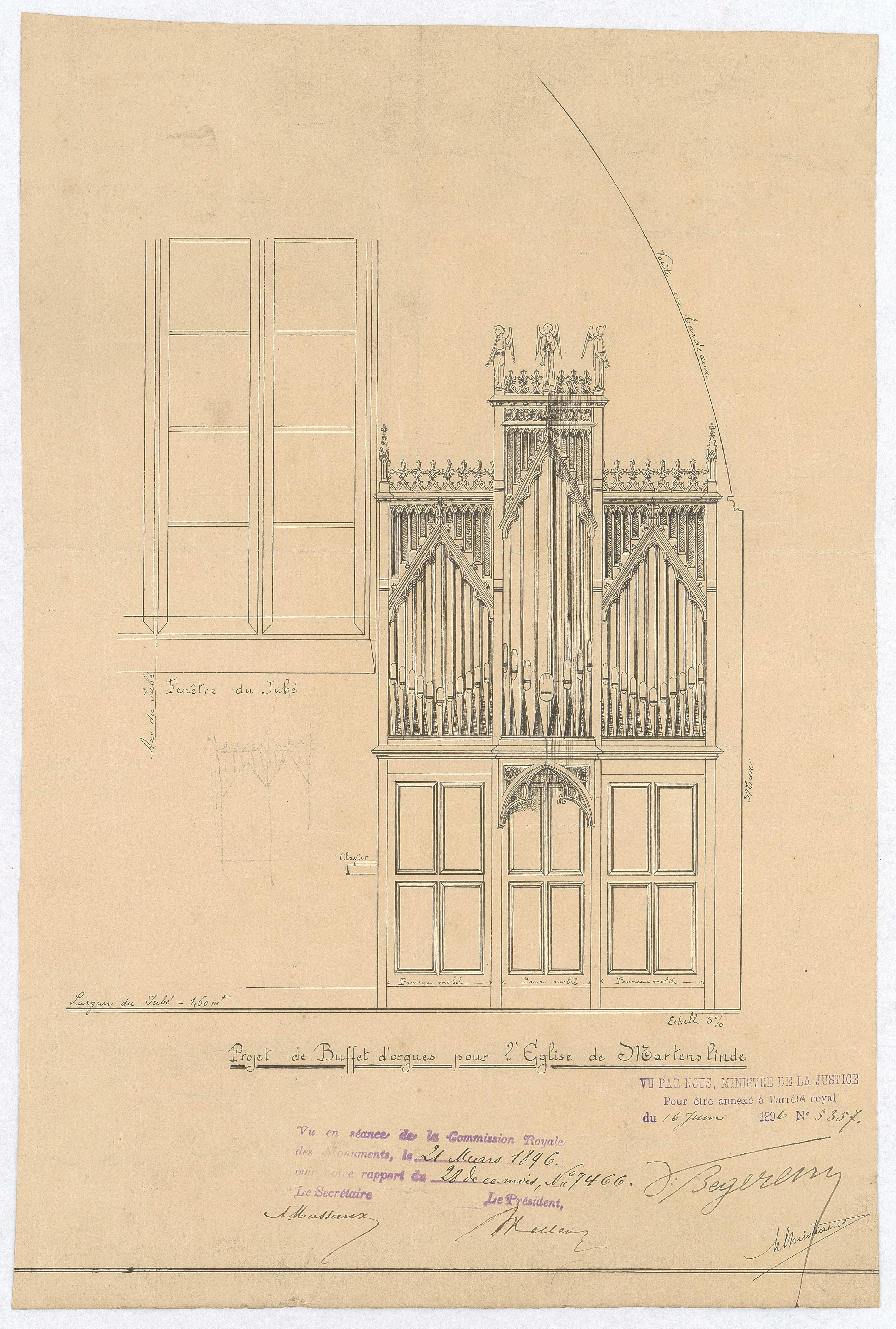 Opschrift: Projet de Buffet d'orgues pour l'église de Martenslinde Omschrijving plan: ontwerp orgel Datum KCML: 21/03/1896 Archiefnummer: L0095