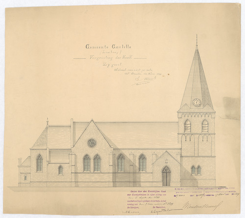 Opschrift: Vergrooting der kerk - zijgevel Omschrijving plan: opstand zijgevel Datum KCML: 02/09/1899 Archiefnummer: L0138
