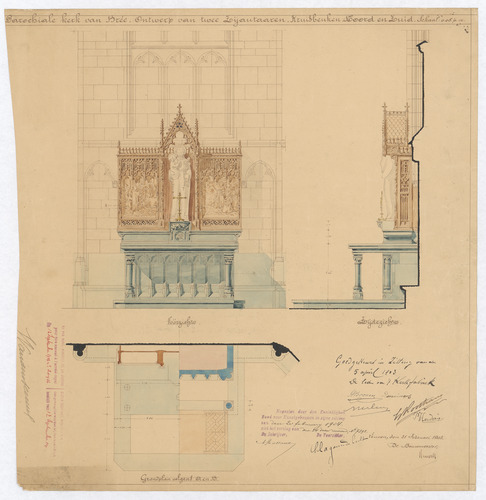 Opschrift: Parochiale kerk van Bree ontwerp van twee zijaltaren Kruisbeuken Noorden zuid Omschrijving plan: ontwerp zijaltaar Datum KCML: 5-4-1903 Archiefnummer: L0184