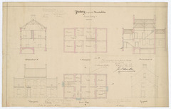 Opschrift: Pastorij der gemeente Munsterbilsen Omschrijving plan: dwarsdoorsnede, plattegrond niveau 0, plattegrond niveau 1, opstand voorgevel, langsdoorsnede, opstand zijgevel Datum KCML: 21/04/1868 Archiefnummer: L0102 Ontwerper: Wijnen, voornaam onbekend
