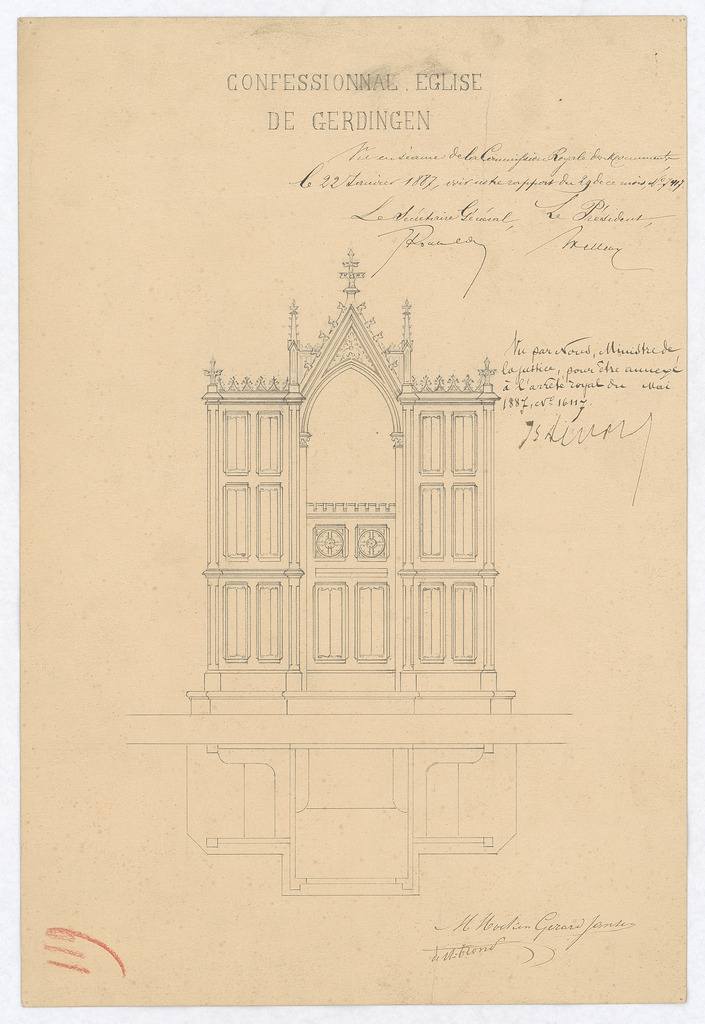 Opschrift: Confessionnal église de Gerdingen Omschrijving plan: ontwerp biechtstoel Datum KCML: 22/01/1887 Archiefnummer: L0195