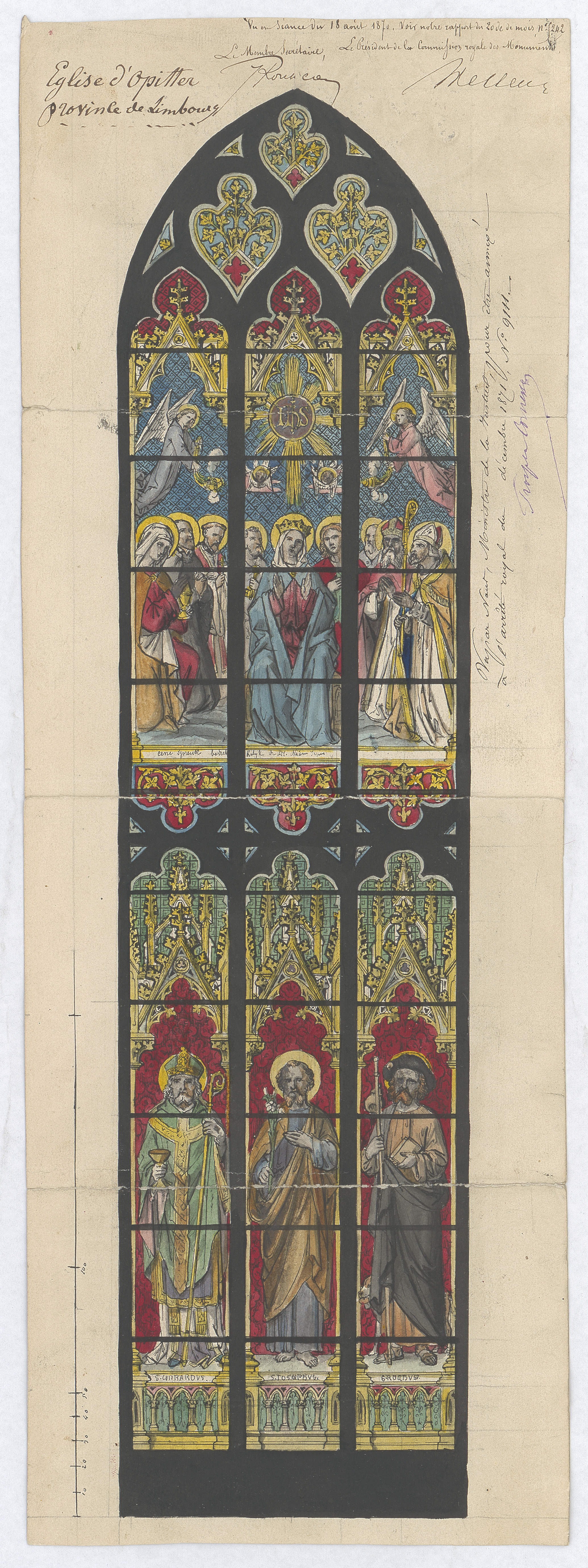 Opschrift: Église d'Opitter Omschrijving plan: ontwerp glasraam Datum KCML: 18/08/1870 Archiefnummer: L0205