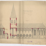 Opschrift: Église saint Pierre à Gingelom projet de reconstruction Omschrijving plan: dwarsdoorsneden, koor, langsdoorsnede Datum KCML: 26/09/1891 Archiefnummer: L0266