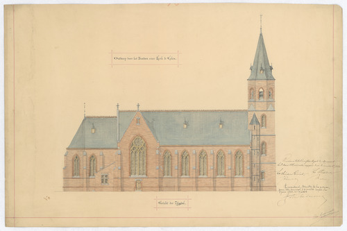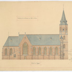 Opschrift: Ontwerp voor het bouwen eener kerk te Eelen - gezicht der zijgevel Omschrijving plan: opstand zijgevel Datum KCML: 03/03/1888 Archiefnummer: L0233