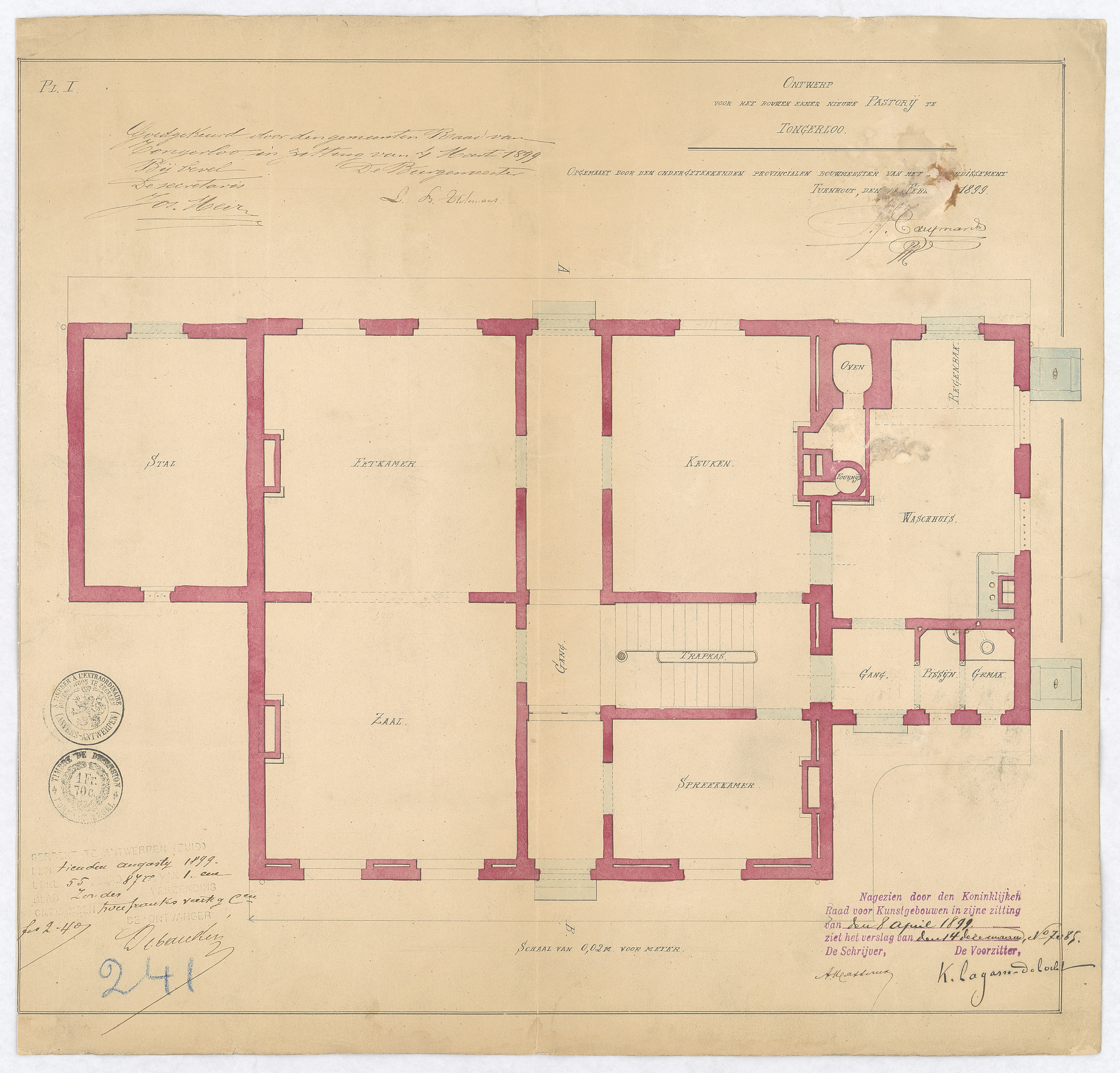 Opschrift: Ontwerp voor het bouwen van eener nieuwe pastorij te Tongerloo Omschrijving plan: plattegrond Datum KCML: 08/04/1899 Archiefnummer: L0219