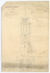 Opschrift: Élévation géométrale de la façade de l'église de côté ouest Omschrijving plan: opstand van de toren, plattegrond van de toren Datum KCML: 08/03/1862 Archiefnummer: L0214