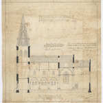 Opschrift: Ontwerp voor het bouwen eener nieuwe kerk te Loxbergen - lange doorsnede Omschrijving plan: langsdoorsnede Datum KCML: 31/01/1891 Archiefnummer: L0293