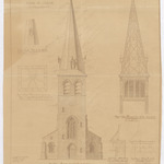 Opschrift: Commune de Gingelom projet de reconstruction de la fléche de l'église Omschrijving plan: opstand W-gevel, kroonlijst, dakspanter, dakkapel Datum KCML: 4-8-1906 Archiefnummer: L0264