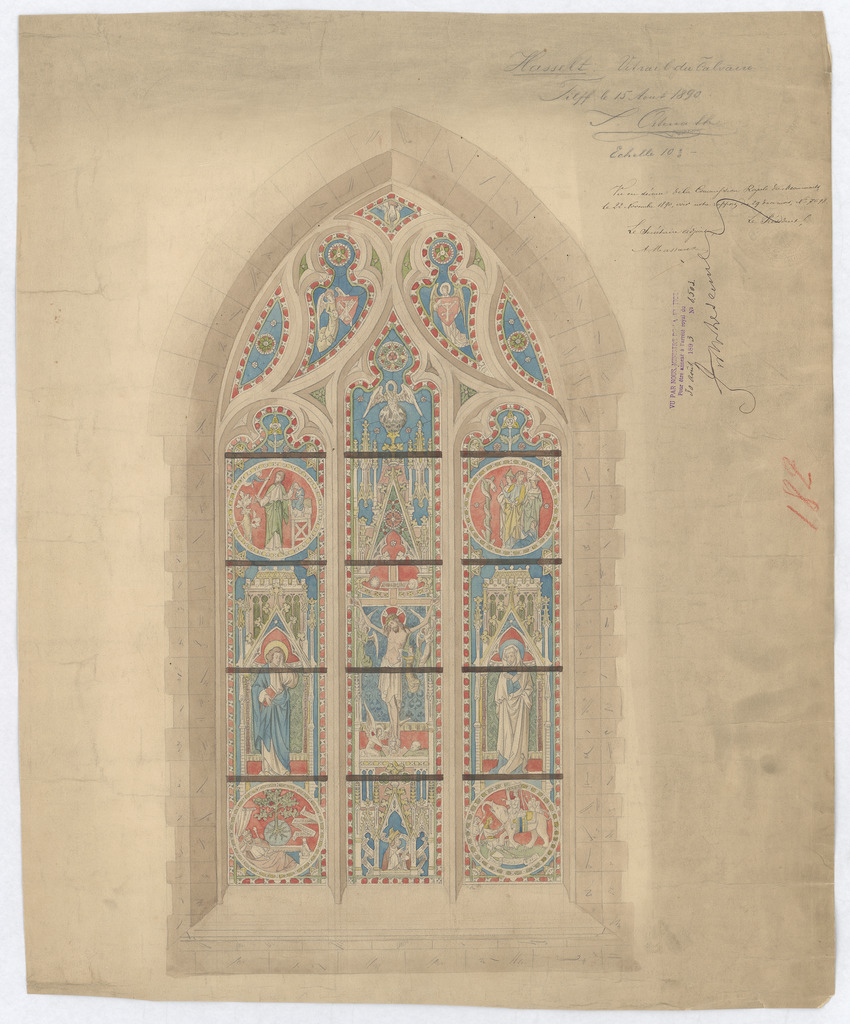 Opschrift: Hasselt vitrail du calvaire Omschrijving plan: ontwerp glasraam Datum KCML: 22/11/1890 Archiefnummer: L0366