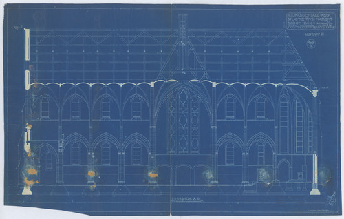 Drager: papier Techniek: blauwdruk Afmetingen (h x b in mm): 680 x 1096 Schaal: 1/50