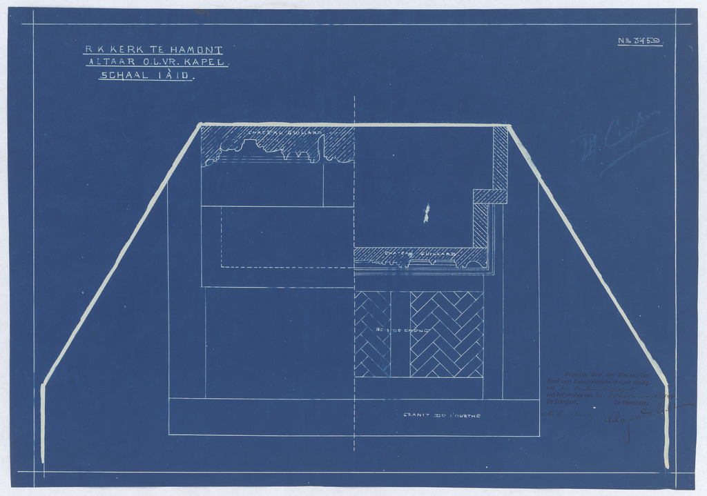Opschrift: 3459 - altaar O.L.Vr. kapel Omschrijving plan: ontwerp altaar Datum KCML: 21-1-1905 Archiefnummer: L0337