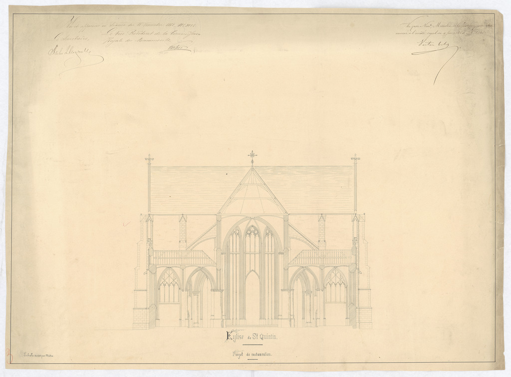 Opschrift: Église de st Quintin projet de restauration Omschrijving plan: dwarsdoorsnede naar het koor Datum KCML: 18/11/1862 Archiefnummer: L0372