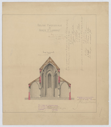 Opschrift: Église paroissiale de Herck-St-Lambert Omschrijving plan: dwarsdoorsnede koor Datum KCML: 19/03/1892 Archiefnummer: L0394