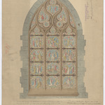 Opschrift: Hasselt N.D. du rosaire Omschrijving plan: ontwerp glasraam Datum KCML: 04/03/1890 Archiefnummer: L0365