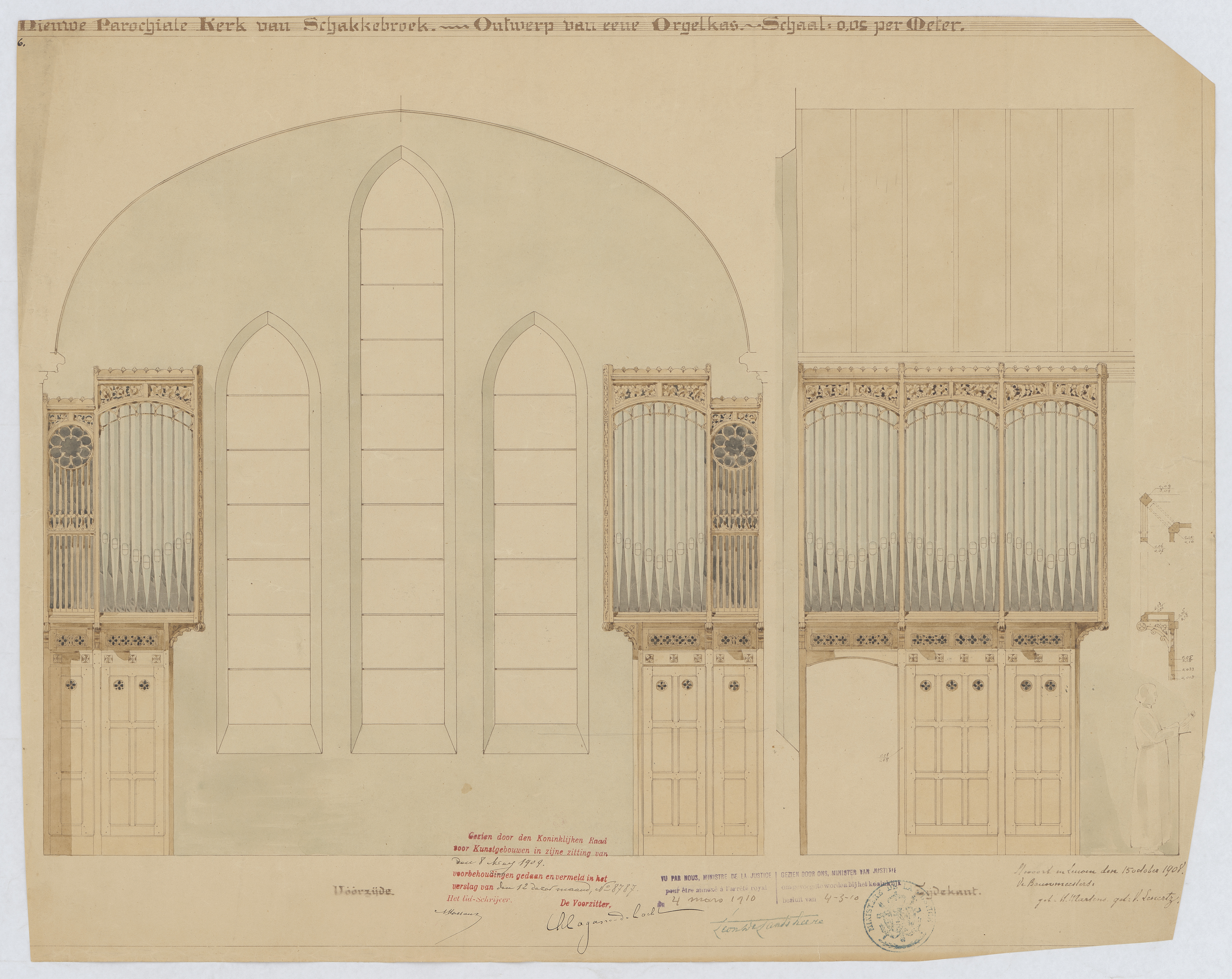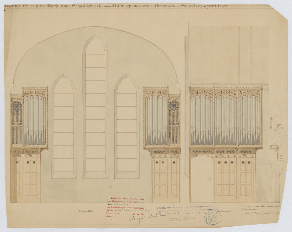 Opschrift: Ontwerp van eene orgelkas Omschrijving plan: ontwerp orgelkast Datum KCML: 8-5-1909 Archiefnummer: L0479