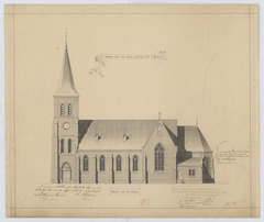 Opschrift: Ontwerp voor eene nieuwe parochiale kerk te Berbroek - gezicht naar het zuiden Omschrijving plan: opstand Z-gevel Datum KCML: 24/05/1890 Archiefnummer: L0454