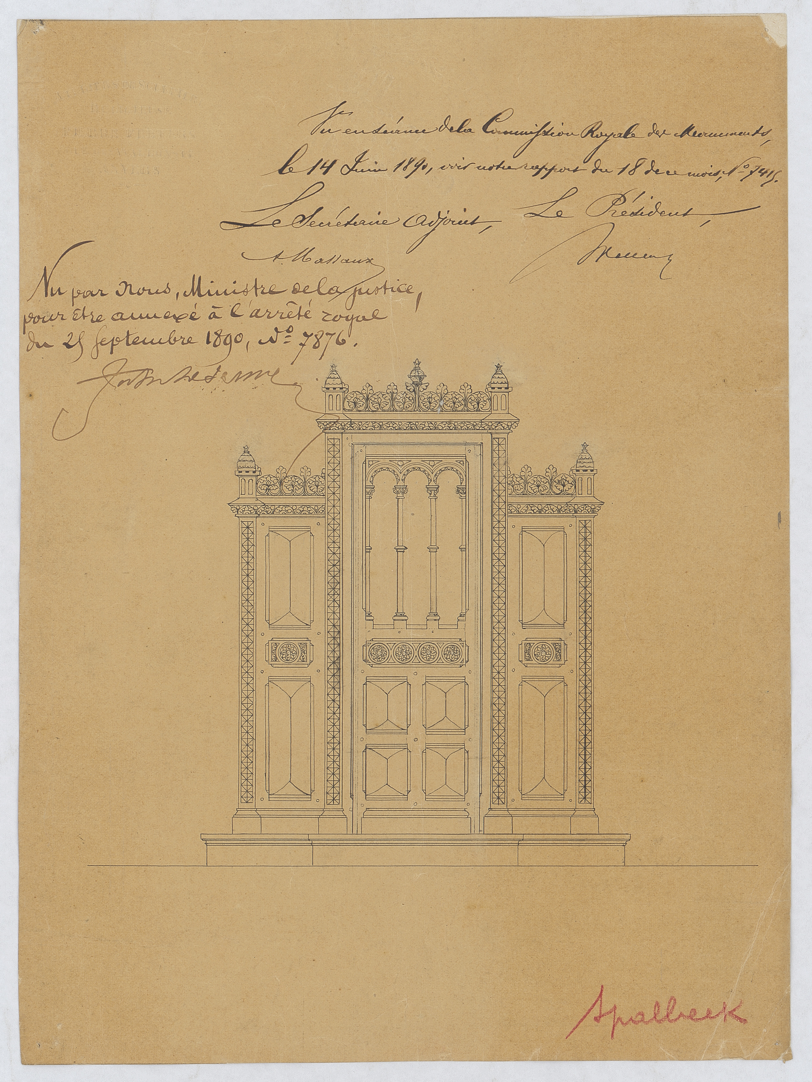 Opschrift: deze informatie wordt niet vermeld op het archiefstuk Omschrijving plan: ontwerp biechtstoel Datum KCML: 14/06/1890 Archiefnummer: L0423