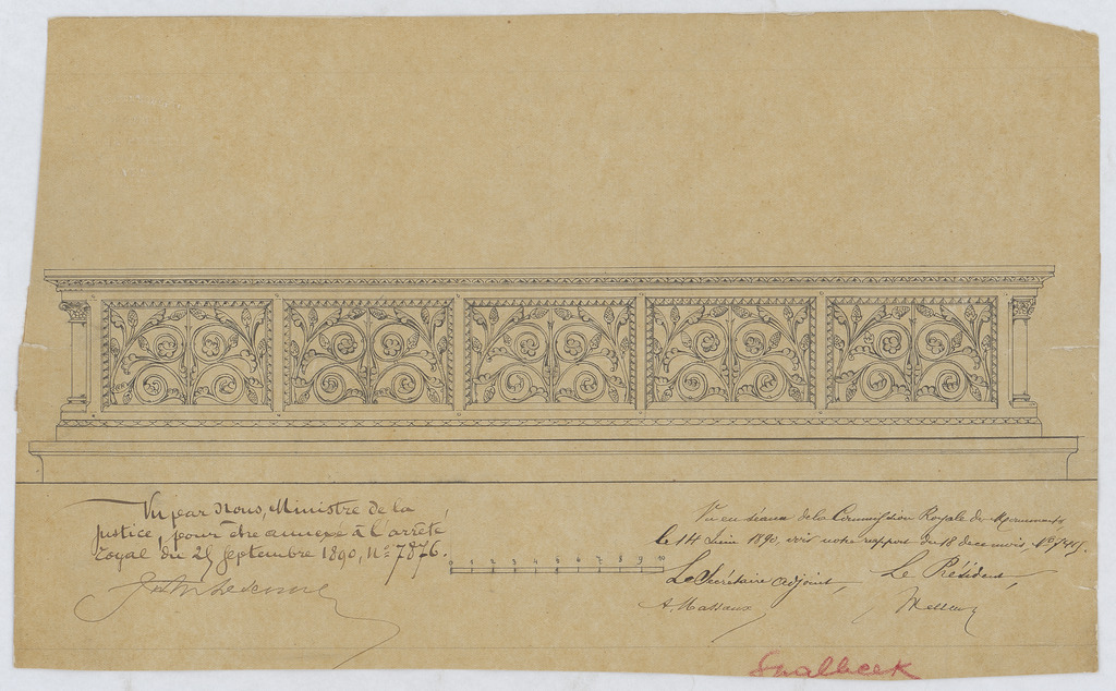 Opschrift: deze informatie wordt niet vermeld op het archiefstuk Omschrijving plan: ontwerp communiebank Datum KCML: 14/06/1890 Archiefnummer: L0419