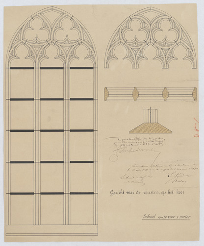 Opschrift: Gezicht van de vensters, op het koor Omschrijving plan: ontwerp glasraam Datum KCML: 01/06/1888 Archiefnummer: L0460