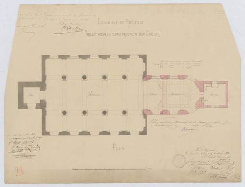 Opschrift: Projet pour la construction d'un chœur - plan Omschrijving plan: plattegrond Datum KCML: 17/01/1874 Archiefnummer: L0451