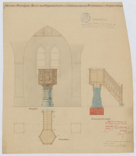 Opschrift: Ontwerp van een prediekstoel Omschrijving plan: ontwerp preekgestoelte Datum KCML: 8-5-1909 Archiefnummer: L0476