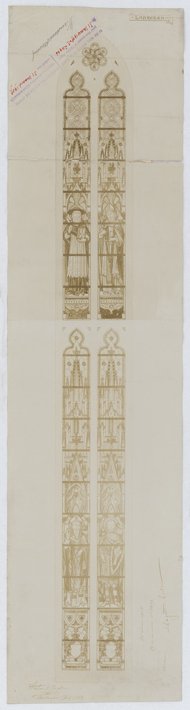 Opschrift: deze informatie wordt niet vermeld op het archiefstuk Omschrijving plan: ontwerp glasraam Datum KCML: 25-6-1904 Archiefnummer: L0577