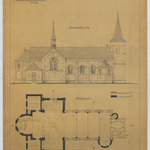 Opschrift: Ontwerp v/d verbouwing der parochiekerk te Geijstingen - Noord-westelijke gevels/plattegrond Omschrijving plan: opstand zijgevel, plattegrond Datum KCML: 16/12/1899 Archiefnummer: L0526