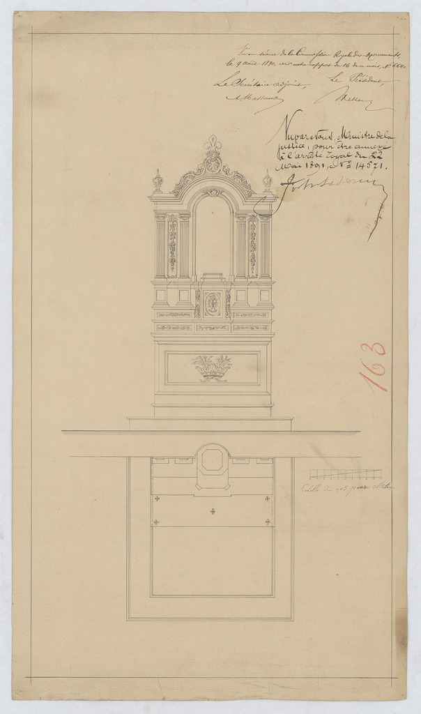 Opschrift: deze informatie wordt niet vermeld op het archiefstuk Omschrijving plan: ontwerp altaar Datum KCML: 09/08/1890 Archiefnummer: L0524