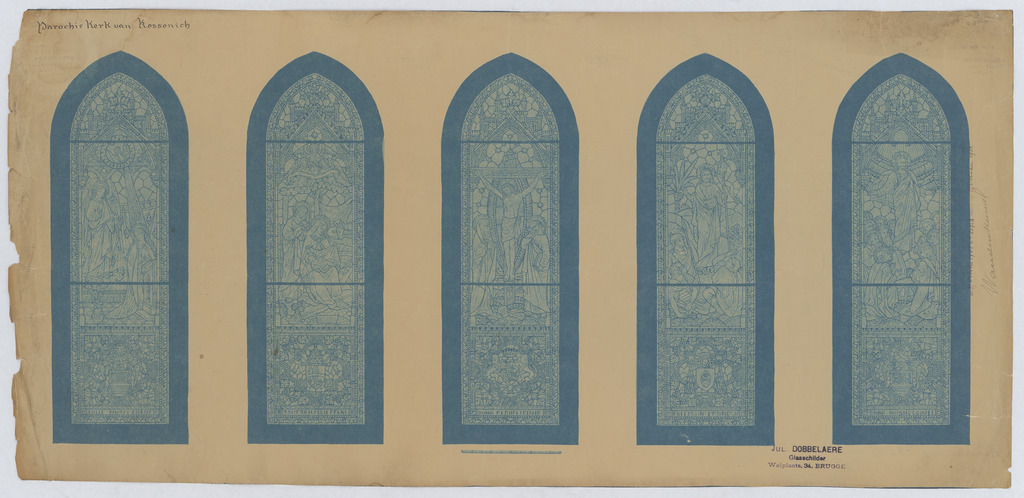 Opschrift: Parochiekerk van Kessenich Omschrijving plan: ontwerp glasramen Datum KCML: deze informatie wordt niet vermeld op het archiefstuk Archiefnummer: L0545