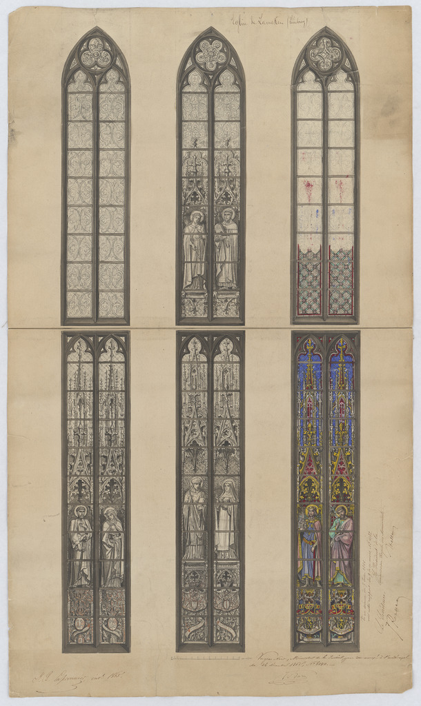 Opschrift: Église de Lanaken Omschrijving plan: ontwerp glasraam Datum KCML: 07/06/1866 Archiefnummer: L0578